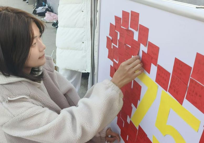 最后,全体成员在明信片上写下对祖国最诚挚的祝福,立下报国的誓言。校学生会顾佳兴写道:“华夏波澜壮阔,少年仍需向前。我爱我的祖国,就像海和浪花一朵;互相包裹,彼此依托;山河远阔,国泰民安;清澈的爱,只为中国。”