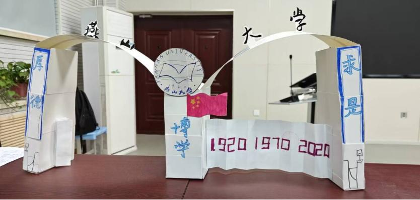 素质拓展于27日中午13:30在东校区第四教学楼108教室举办,由“墨韵风华”和“牌筑门楣”两个环节组成。在“墨韵风华”中,十八个小组的同学利用细线对毛笔进行控制以完成本队logo的制作,旨在加强团队合作能力,提高个人交际能力与团队凝聚力,为接下来的比赛打好基础。在“牌筑门楣”中,各组同学利用白色扑克牌、马克笔、胶水和胶带等材料完成了校门的制作。从外观到寓意都体现出同学们积极创新的精神。最终,来自第七组的同学以出色的表现获得了第一名的成绩。他们选择了将科技与人文历史相结合的白色大门。柱子上辅以代表理性、智慧的蓝色,同时正中间的校徽与自动门上的年份不仅仅是装饰,更是象征燕大精神和文化的传承与发展。