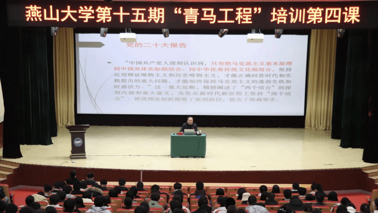 专题讲座夯实理论根基。本次培训特邀对越防御作战一等战功获得者王进才、我校马克思主义学院副院长黄娟、昌黎李大钊研究专业委员会秘书长闫梦哲、山东大学马克思主义学院教授徐国亮讲授专题讲座。王进才以《守疆固土爱国奉献,忠于祖国热爱人民》为题讲述自身参与对越防御作战和日常生活中乐于助人的故事,引导学员们深刻领悟爱国奉献的精神实质,激励学员们立志将爱国情怀转化为实际行动;黄娟以《推动绿色发展,促进人与自然和谐共生》为题,从全球生态格局出发,结合党的二十届三中全会精神,深入浅出地阐述了人与自然和谐共生的理念,号召学员们积极投身于美丽中国建设的伟大实践;闫梦哲以《李大钊的光辉一生》为题展现了李大钊同志为中国革命事业不懈奋斗的壮丽历程,深入解读了李大钊同志坚定的共产主义信仰和无畏的革命精神,促使学员们深刻认识到新时代青年所肩负的历史重任;徐国亮围绕《贯彻“第二个结合”,学习传统文化,加强人生修炼》深入阐释了马克思主义基本原理与中华优秀传统文化相结合的重大理论意义与实践价值,引导学员们从传统文化瑰宝中汲取智慧养分,提升精神境界,锤炼品德修养,实现个人成长与国家发展的同频共振。