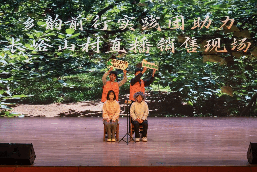 第二篇章:青春筑梦乡野,绘就发展新篇。经济管理学院“燕腾红旅•村村共兴”实践团深情讲述了燕大学子与井冈山革命圣地的红色情缘,团队探索红色旅游与乡村振兴融合发展新路径,诠释“一次井冈行、一生井冈情”的深厚内涵。材料科学与工程学院“乡韵前行”社会实践团通过情景剧的形式,引领观众回顾了团队跨越三个城市,分析传统村落发展现状,探索乡村振兴有效路径的实践历程,以青春热忱推动乡村文化传承。艺术与设计学院“青春筑梦•艺绘乡村”实践团用画笔描绘美丽乡村,带领观众重回西古城村实践现场,精彩展现了团队成员走进乡村田间,发挥学科专业优势,用艺术赋能乡村振兴的实践故事。