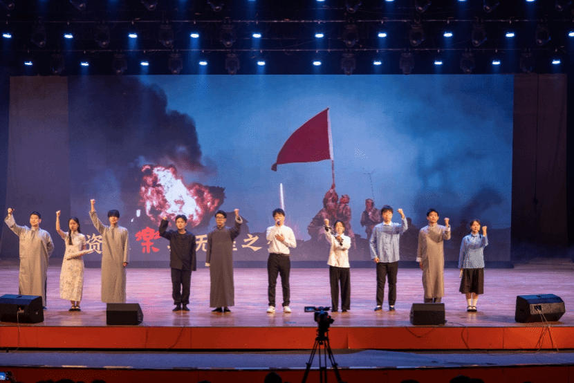 本次诗会将历史脉络与现代元素完美融合,从历史发展角度出发,以红旗为经纬,回望奋斗历史,激发青年未来担当。诗会在开篇视频《中国红》的恢弘画面中启幕,铺展红色历史底色。