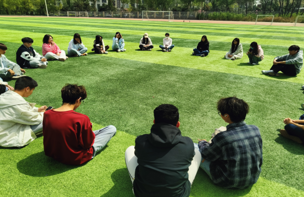 学生社团管理部成员在操场开展素拓活动