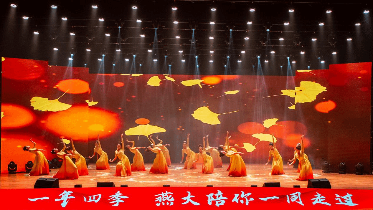 第三篇章“启航·新征程”以家国为怀,锚定时代坐标,奏响强国乐章。朗诵《这盛世如您所愿》以古今对话的铿锵字句,许下燕大人与国同行的誓言;歌曲《如愿》温暖坚定,诉说将个人理想融入时代浪潮的信念;舞蹈《从来银杏不负秋》以银杏为意象,寓意燕大学子在历史传承中书写新篇;歌曲《高飞》融合机器人创新团队的科技秀,诠释燕大学子以创新赋能、向未来高飞的壮志;歌曲《领航》以恢宏旋律激励新生勇担“重器承国志”的时代使命,为民族复兴贡献燕大力量。