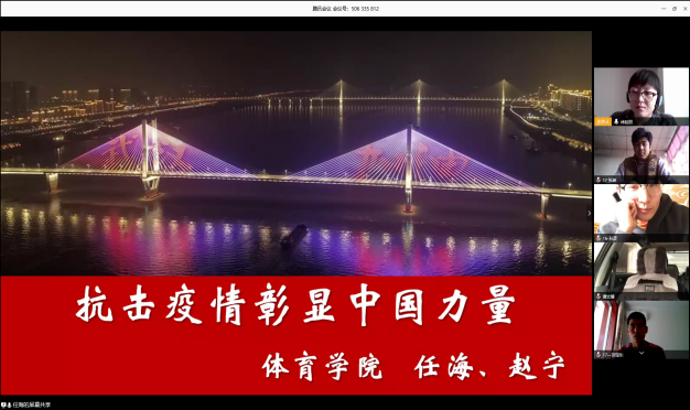 为引导广大学生增强“四个意识”、坚定“四个自信”、做到“两个维护”,坚定在以习近平同志为核心的党中央坚强领导下打赢这场疫情防控人民战争、总体战、阻击战的信心和决心,深刻认识中国抗疫过程中彰显的中国共产党领导和中国特色社会主义制度的显著优势。体育学院于3月18日下午举办“战疫云课堂”专题讲座,由学院党委书记任海、学院党委副书记赵宁共同为全院学生上了一堂主题为《抗击疫情彰显中国力量》的专题讲座,此次活动由体育学院团委组织,学院团委书记徐延丽主持本次活动。