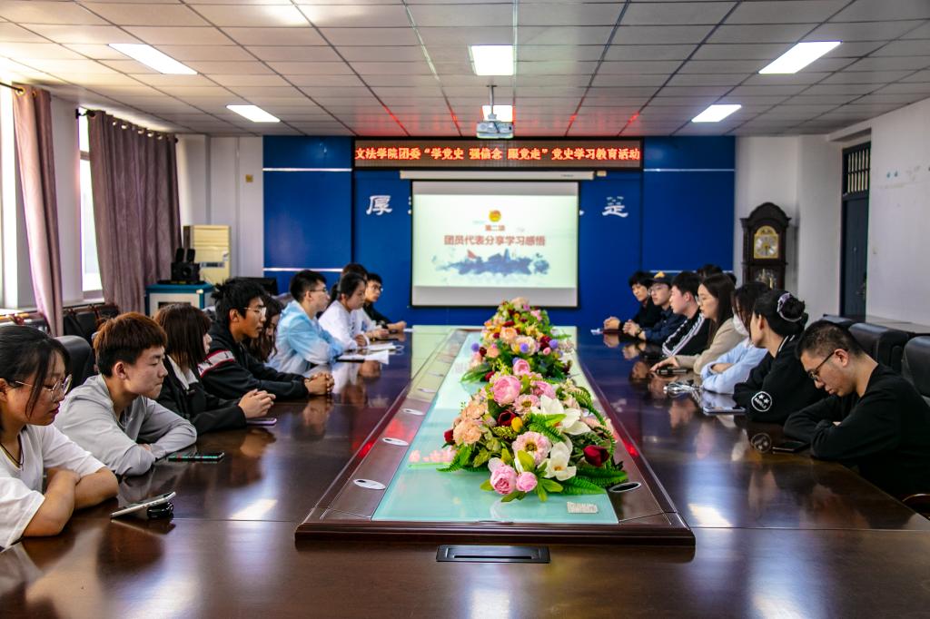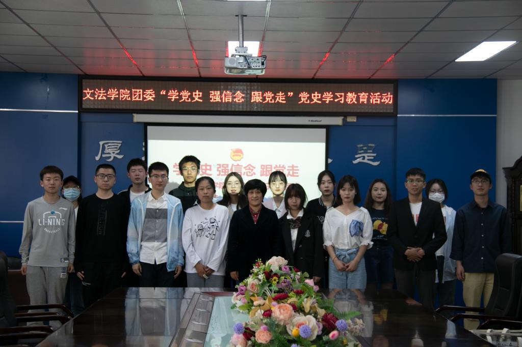 为推动党史学习教育落地落实,充分发挥共青团组织优势,5月8日下午14:00,文法学院(公共管理学院)团委在人文馆224室开展了“学党史 强信念 跟党走”党史学习教育交流分享会。文法学院(公共管理学院)团委书记曹婷婷、学生团委副书记邢跃帅和青马工程学员代表参加了本次活动。