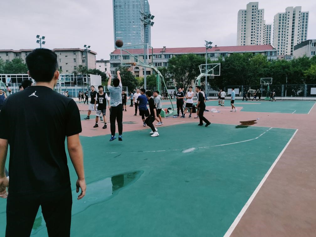 下半场开始不久,随着唐先智老师的三分球入筐后,天空骤降大雨,比赛不得不提前结束。在场的老师们和同学们说,比赛虽提前结束,但与同学们的交流不会止步。最后,在师生们欢声笑语中比赛落下了帷幕。