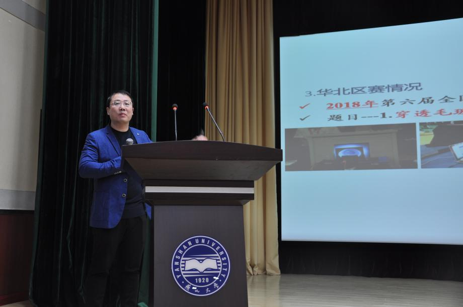 付兴虎老师主要对全国大学生光电设计大赛进行了介绍。他从竞赛简介开始讲起,依次介绍了竞赛的历史、华北区赛的情况、报名竞赛方法。同时,还介绍了创意赛和常规赛的相关情况,鼓励同学们跨专业组队参赛。