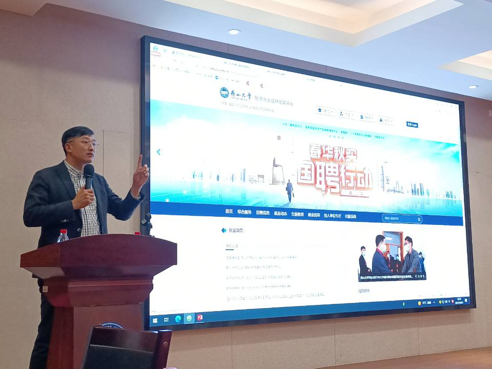 在会上,王鑫老师引导同学们要及时树立正确就业观念,详细介绍了就业工作流程的各个环节、关键时间节点,就业协议书、就业报到证、就业推荐表、档案等重点内容。王鑫老师还为求职同学在智慧就业信息服务平台细心解读就业信息。