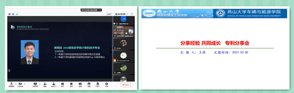 专利申请分享会期间,来自信息学院的黄朝园同学及车辆学院的王浩同学为同学们分享了专利申请的经验及方法。黄朝园同学已申请专利两项,分享了自己编写的专利申请“傻瓜式申请教程”。王浩同学讲解了专利的主要内容和审核流程,介绍了佰腾网和中国及多国专利审查信息平台。