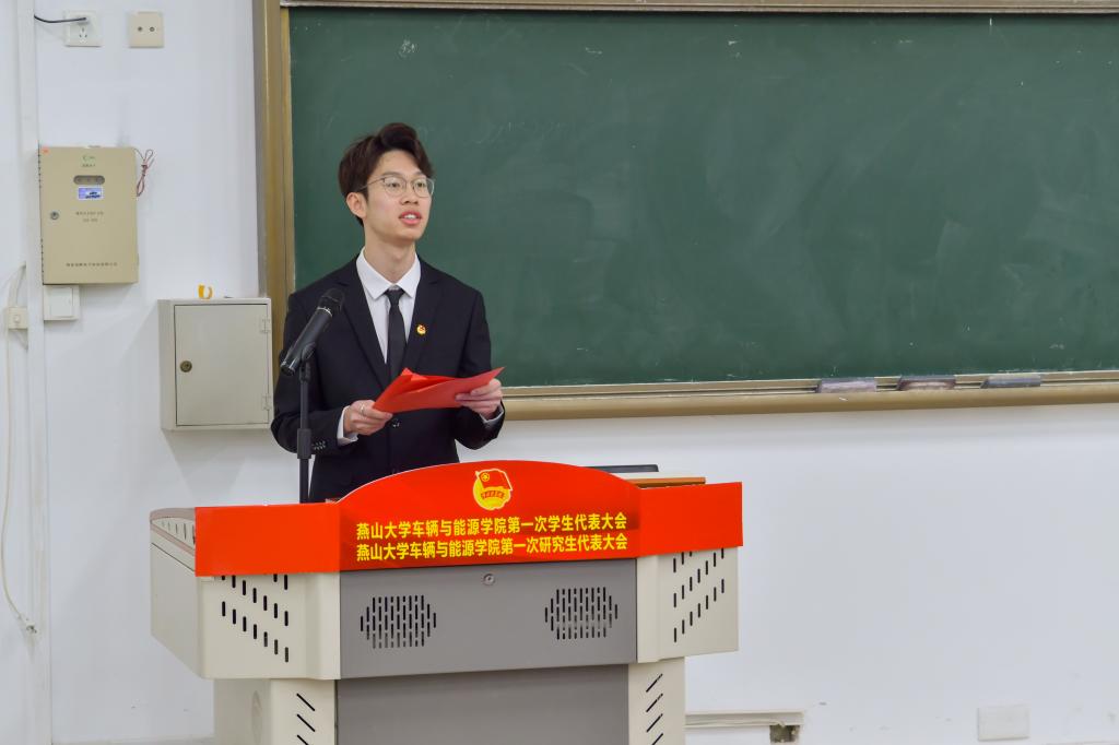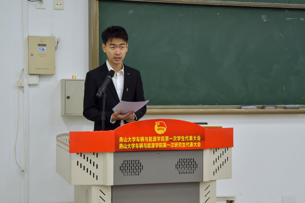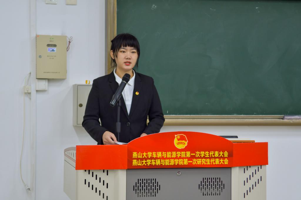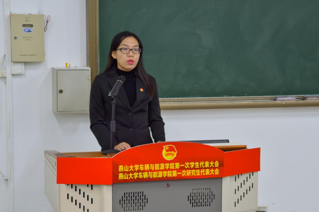 陈俏儿同学代表乌鸦传媒车辆与能源学院新一届研究生委员会以《立足学术科研路 稳固交流新平台 强化内部建设 加强跨院交流 竭诚为车辆与能源学院研究生发展服务》为题向大会作工作报告,全面回顾总结了一年来研究生会工作取得的重要成就,进一步明确了新时期学院研究生会工作的发展目标、总体要求和主要任务。她指出新一届研究生会将带领青年学生艰苦奋斗、砥砺前行,为实现“中国梦”、“燕大梦”贡献青春力量。