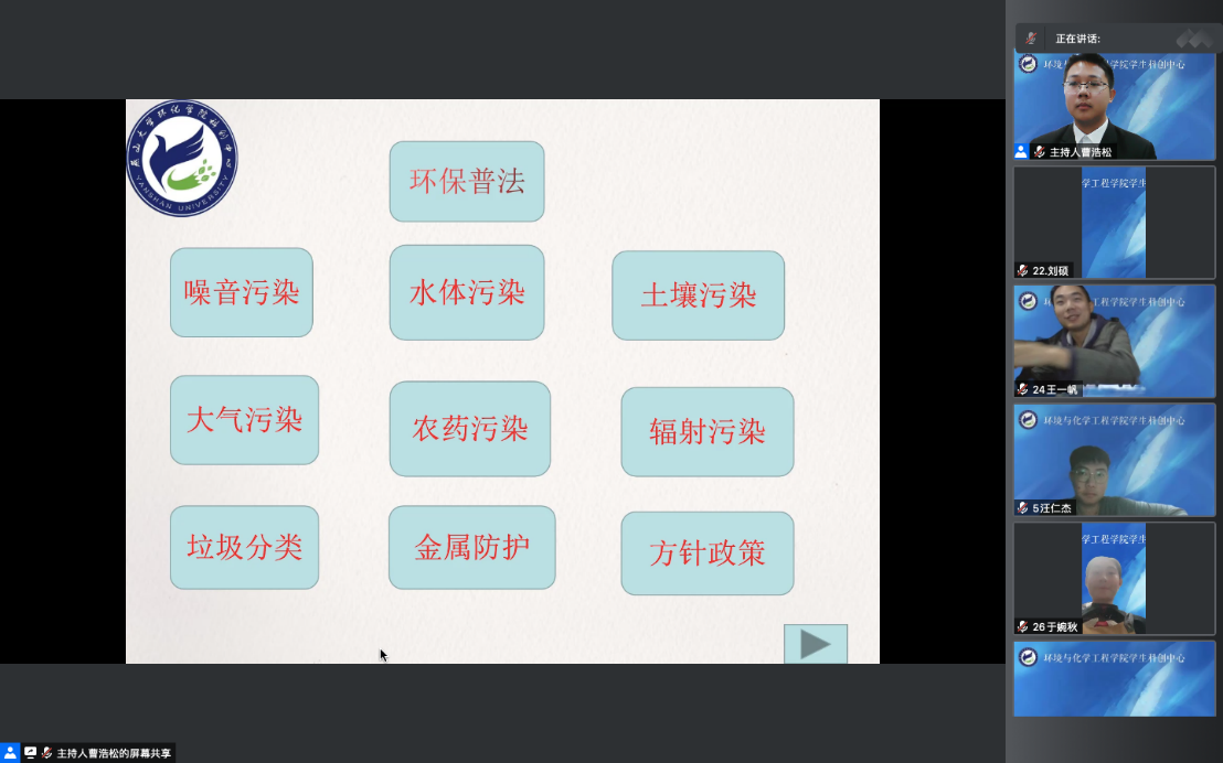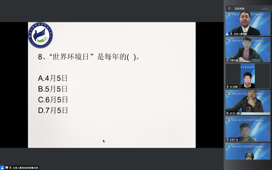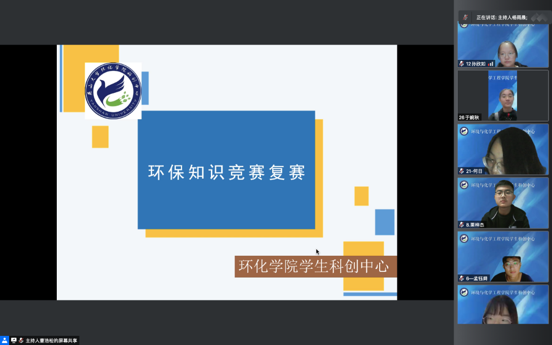 此次竞赛面向环境与化学工程学院全体学生,近300名同学经过10月中旬激烈的线上初赛、复赛,26名选手脱颖而出,进入10月31日的决赛。决赛以腾讯会议与学习通相结合的方式开展,共分为三个环节。
