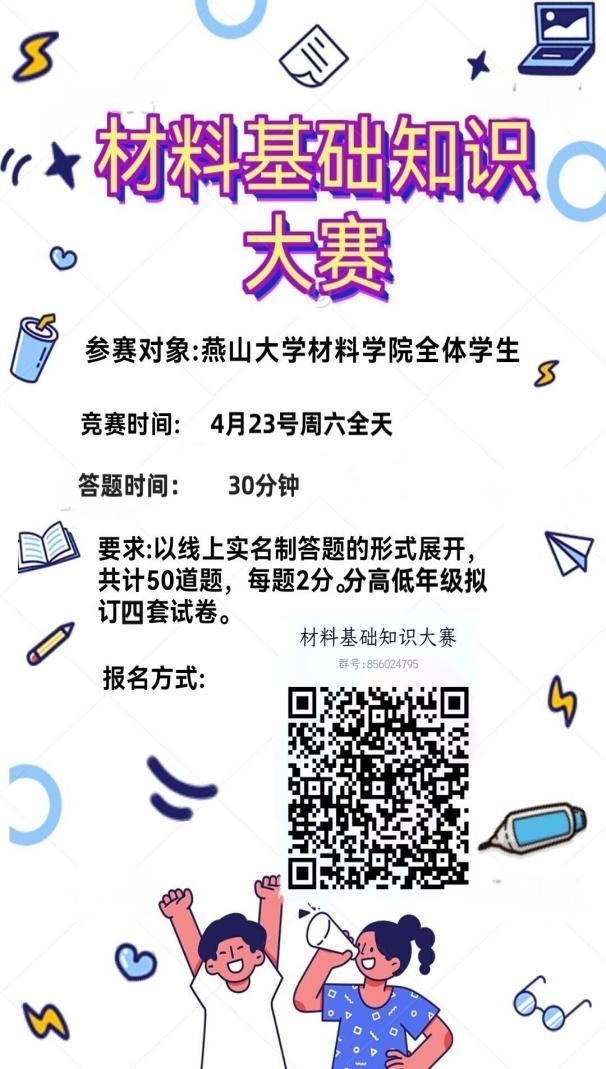为激励广大材料学子“崇尚科学、追求真知、勤奋学习、锐意创新、迎接挑战”的精神,激发其对材料科学的热情与兴趣,增加对材料相关知识的了解,材料学院团委于4月23日举办第一届材料基础知识竞赛。