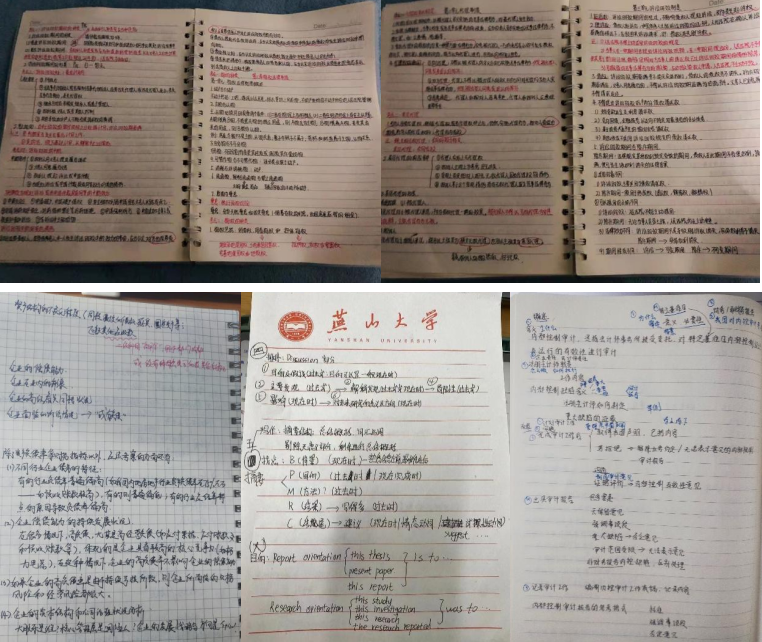 毕业生一份份精美的笔记字迹工整,图案精美,条理清晰,这些笔记或是公共课程,或是专业必修,或是课堂笔记,或是考研笔记,或是手写版,或是电子版……笔记的字里行间中充分展现了同学们良好的学习习惯和严谨的自律精神。