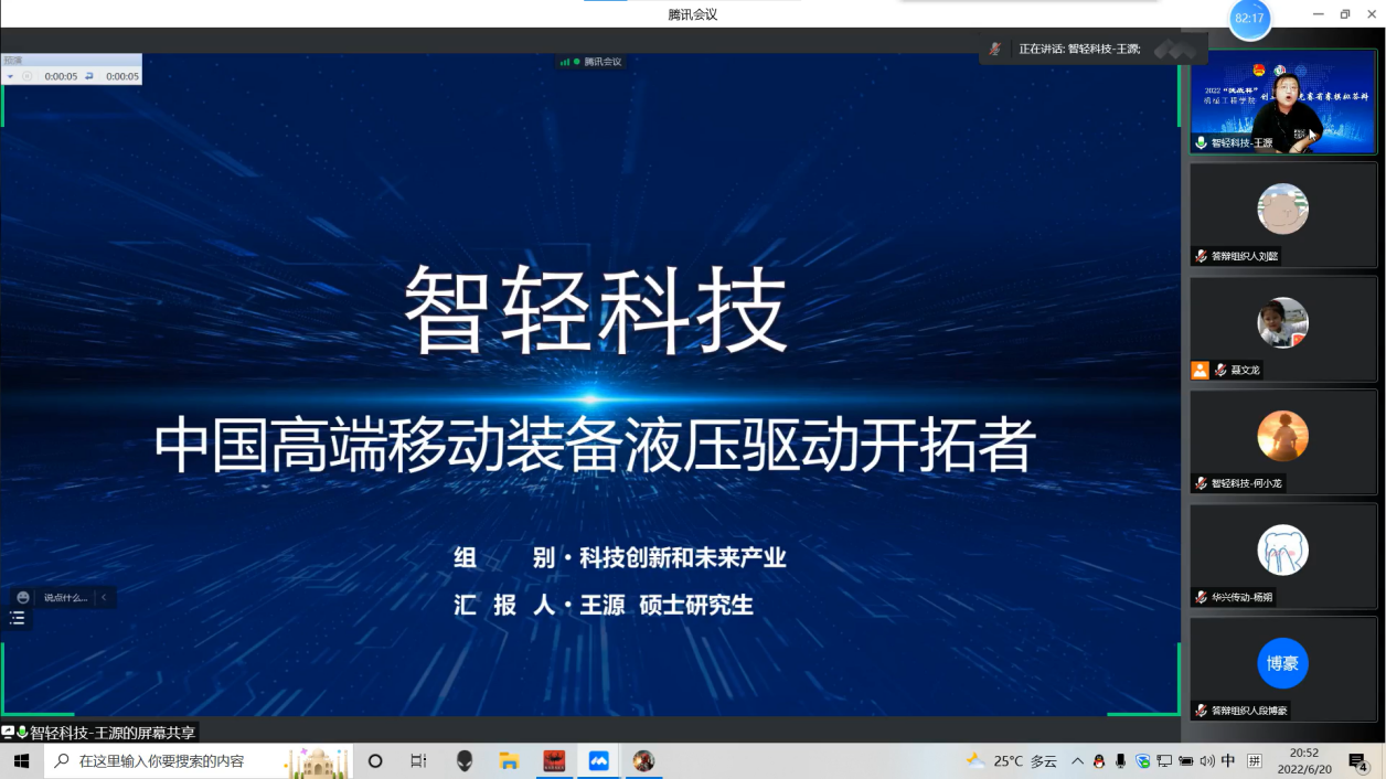 2022年6月20日,机械工程学院举办了“挑战杯”大学生创业计划竞赛冲刺省级决赛模拟答辩会。由于疫情原因,本次模拟答辩会在线上进行。答辩会邀请俞滨教授、刘宇涵老师和张志辉老师担任评委,入围挑战杯省赛决赛的5支队伍的指导老师及学生代表参加会议,团委书记聂文龙主持会议。
