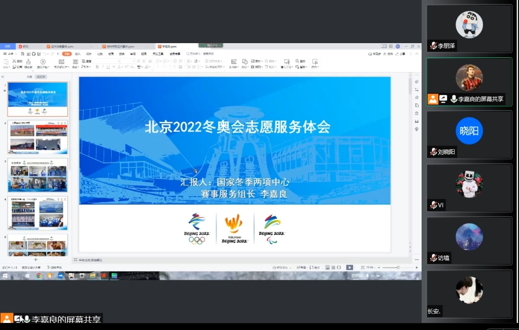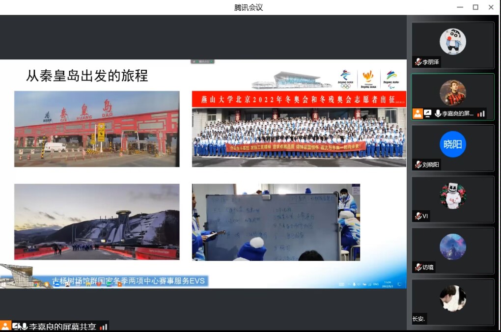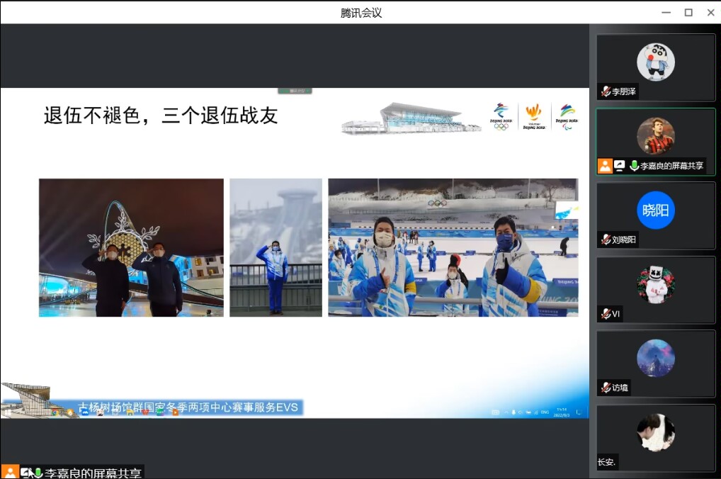 接下来,李嘉良就志愿经验和感悟进行了分享,在退伍后,他积极参加各类志愿服务活动,曾参与北京2022年冬奥会和冬残奥会志愿服务工作,在实践中践行“退伍不褪色、全心全意为人民服务”的宗旨,弘扬人民子弟兵的优良作风。浩浩凌云志,拳拳报国心,志愿路上,每一个燕大人的身影,都书写着家国情怀。李嘉良生动地介绍了赛事服务志愿者的主要工作,每一张照片、每一段视频都记录着志愿者们的工作瞬间,都印证着一段温情和精彩,同学们也身临其境地感受到了冰雪赛场上熊熊燃烧的热情和爱国情怀。