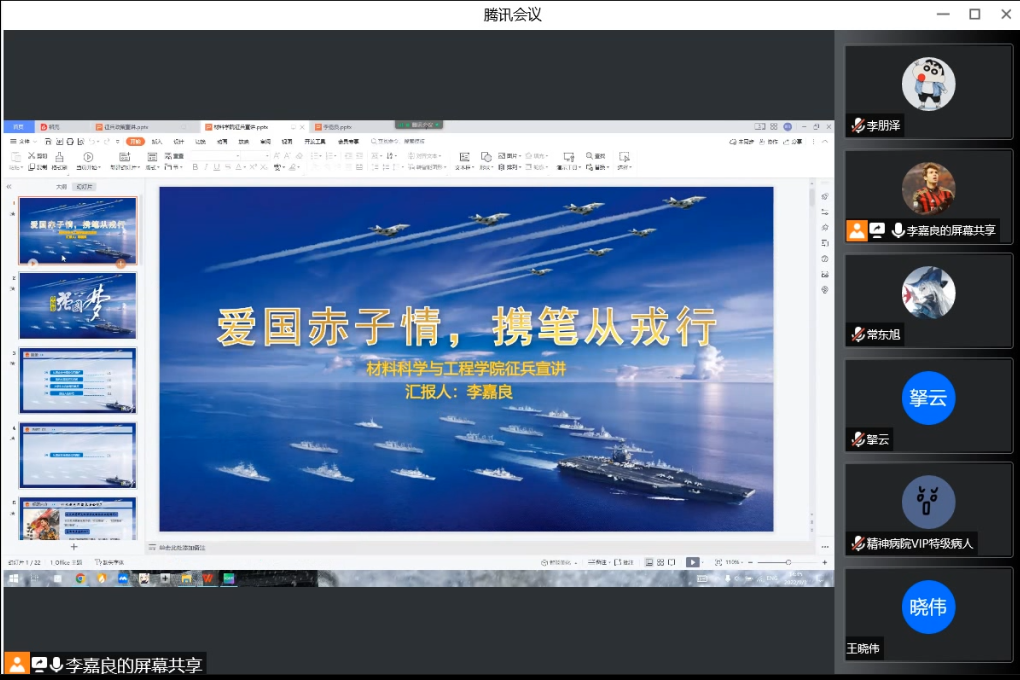 执笔从戎,不负韶华,冰雪情缘,共向未来!9月3日下午,材料科学与工程学院团委组织召开“从浪花白到志愿蓝”入伍政策宣讲及冬奥志愿服务经验分享会,会议邀请2020级高分子材料与工程专业学生李嘉良作为分享人,材料科学与工程学院2022级全体学生参加了本次活动。