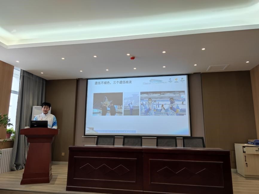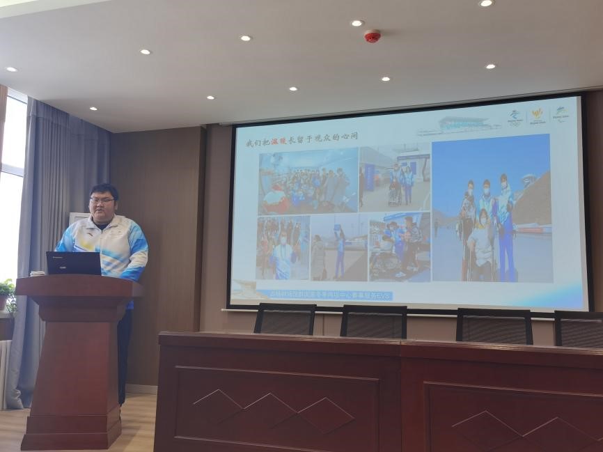 雪花飘落在志愿者冻结成冰的睫毛上。身为国家冬季两项中心赛事服务领域主管的魏东老师向大家讲述了赛事服务领域的日常点滴,在我们看不见的地方仍有无数人为我们保驾护航。“以服务温情温暖寒冬,用赤诚之心感动你我。在志愿服务中用最真诚的心为观众打造宾至如归的体验,在冬两场馆留下美好的志愿印记。”是每一位赛事服务人的心之所向。