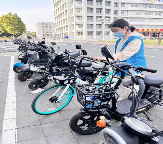 他们统一身穿蓝色志愿者服装,积极投入到志愿活动之中。志愿者们始终保持着热情向上的精神面貌,齐心协力将停放混乱的车辆一一摆正,并引导同学规范停车,将停车区域变得整洁有序。