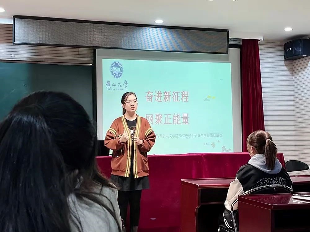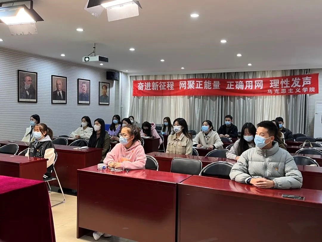 10月29日下午2点,马克思主义学院2022级硕士研究生在严格遵守学校防疫要求下,于东校区人文馆502举行了团日活动。此次团日活动以“奋进新征程,网聚正能量”为主题,引导我院研究生规范使用网络语言,增强同学们的网络安全意识,提升网络文明素养。