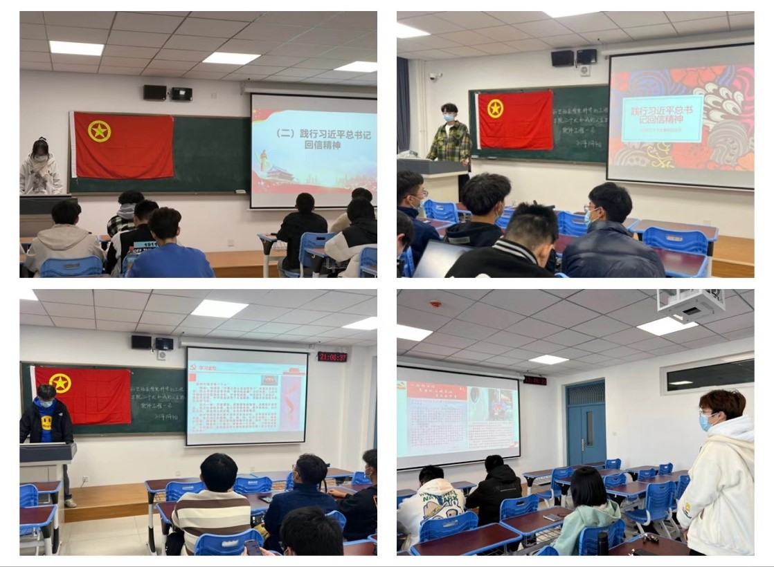 近年来,习近平总书记在多个重要时间节点和重大事件后给青年群体回信,勉励广大青年踔厉奋发。主题团日活动中,学院精选了《习近平给莫斯科大学中国留学生的回信》《习近平给北京大学援鄂医疗队全体“90后”党员的回信》等10篇与青年群体相关信件作为学习素材,引导支部同学通过“读原文-理背景-悟金句-话未来”的方式,在理解回信内容的基础上,深刻了解回信背景和榜样事迹,在了解榜样事迹的基础上谈感受、话未来,激发广大同学使命感与责任感。
