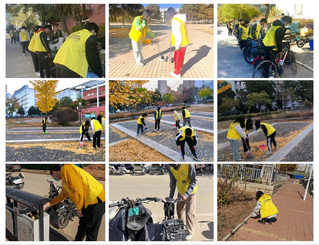 为积极引导学院青年将党的二十大精神与实践相结合,以实际行动践行党的二十大精神,学院团委还安排了支部校园志愿服务活动。在校园、寝室、食堂等地,摆放自行车和电动车、清扫公共教室卫生、开展文明劝阻,将汗水洒在校园、将干净献给大家、将快乐留给自己。通过形式多样的志愿服务活动,推动了党的二十大精神入脑入心。