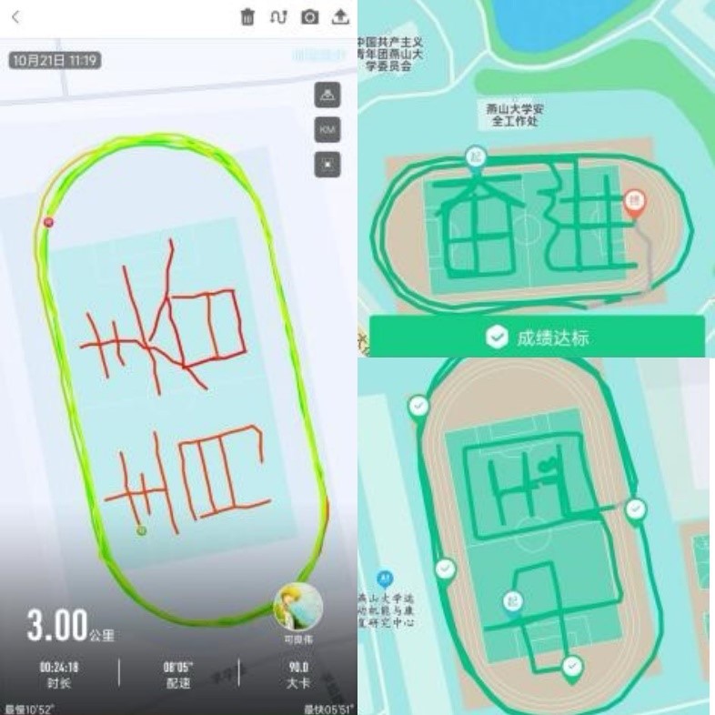 此次涂鸦跑活动围绕“不忘来时峥嵘路,青年拔节展才华”的主题,选取了四个与之相关的关键词:“中国”、“I♥YSU”、“青春”和“奋进”。在本次活动中,广大同学积极响应、踊跃参与,最终共计提交200多份作品。评委老师根据作品的美观程度和跑步公里数进行评分,评选出了120份获奖作品。在本次活动中,莘莘学子在青春的赛道上赛出了青年靓丽的风采,用独特的方式庆祝党的二十大胜利召开!