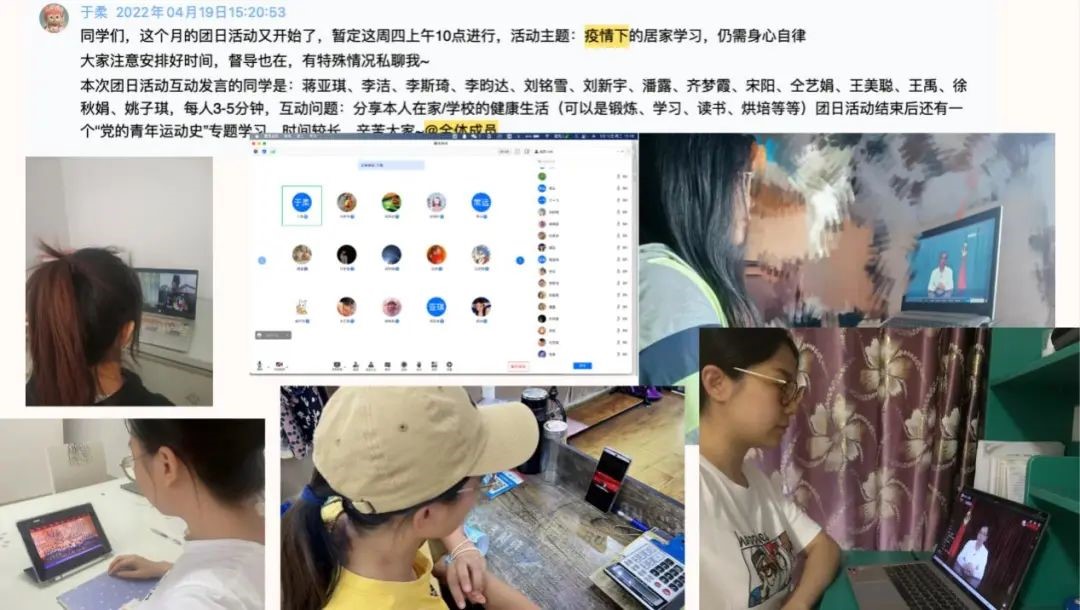 在疫情期间,团支部开展“疫情下的居家学习,仍需身心自律”主题团日活动,团员青年分享学习、生活经验,增进团支部成员相互间交流,调动团员学习积极性,规划团员自律生活,进一步加强团支部凝聚力。