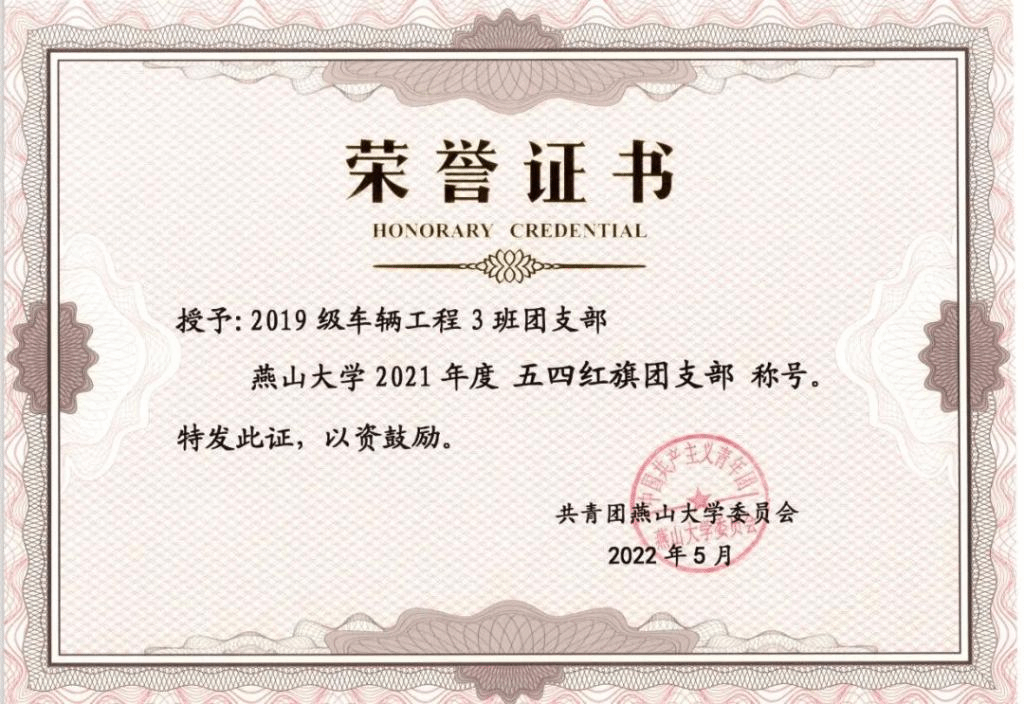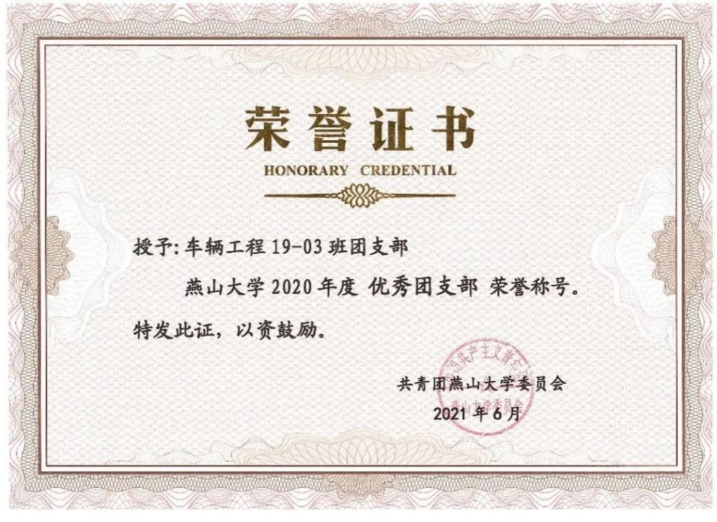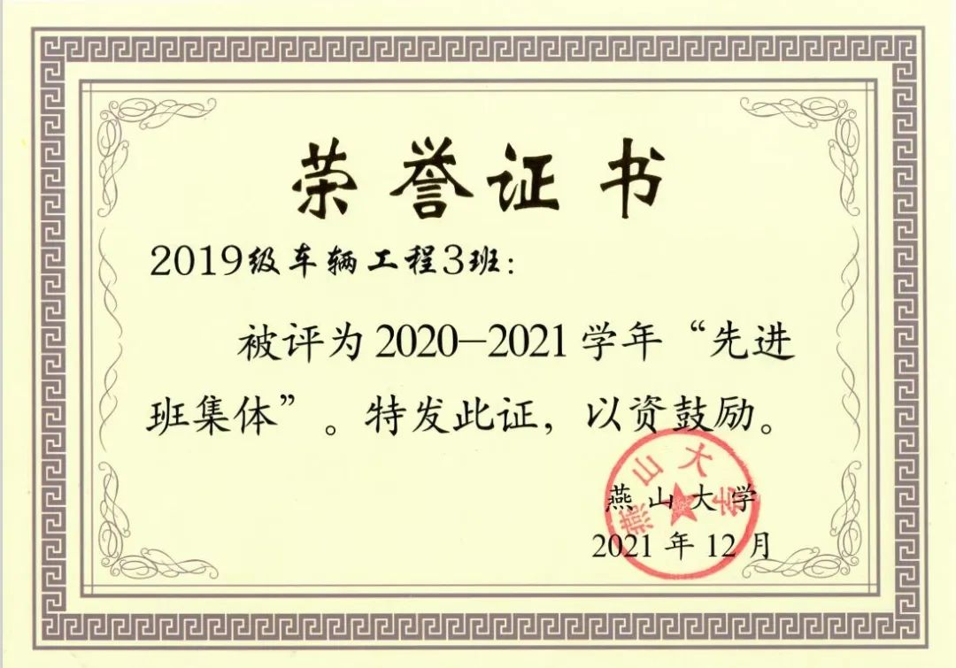 2019级车辆工程3班全体同学真诚的希望,能够以先进支部的荣耀不断激励自己朝气蓬勃、锐意进取、满怀激情、斗志昂扬地在燕大这片美丽的田野上耕耘着未来的理想。
