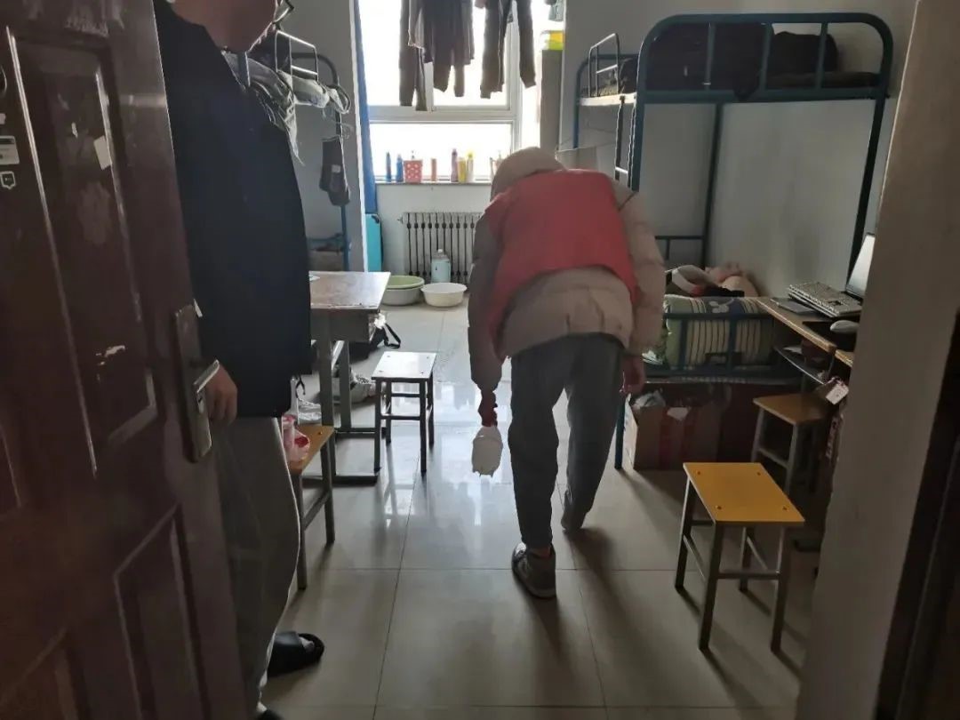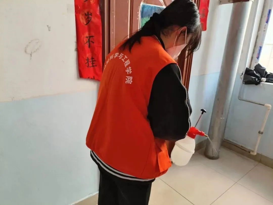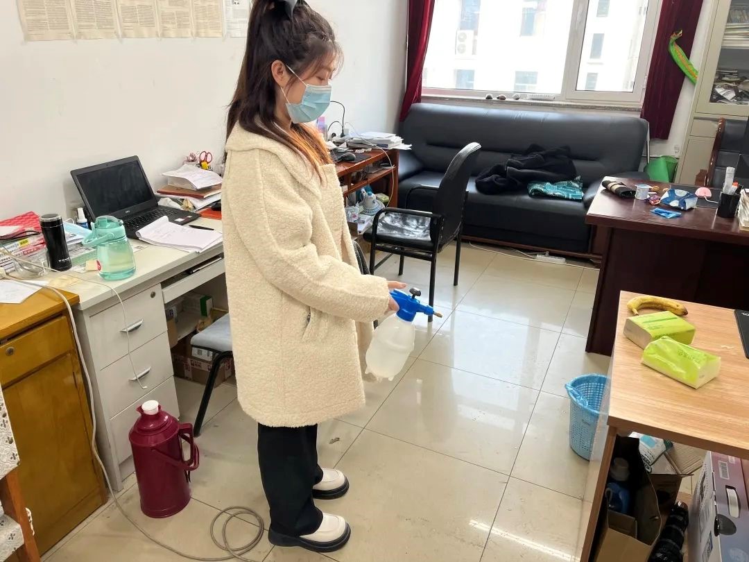 在消毒中,学生会工作人员在做好自身防护的同时积极参与,认真清理每一个角落。坚持做到不留死角,并细心指导各寝室卫生情况并提醒大家及时通风,充分考虑同学们的身体健康。消毒完毕后,工作人员及时将消毒药品整理收拾并做记录,为日后展开消毒工作奠定基础。