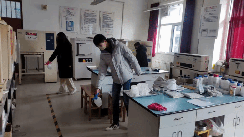 课题室是研究生工作学习的场所,干净、整洁、温馨的课题室环境不仅可以让同学们保持愉悦的心情,还可以提高学习和工作效率。材料学院研究生会对材料楼的课题室进行了卫生检查和消毒工作,对于走廊、楼道、过道等必经区域均进行了消毒,确保走廊、楼道、过道等地方的卫生保持整洁。