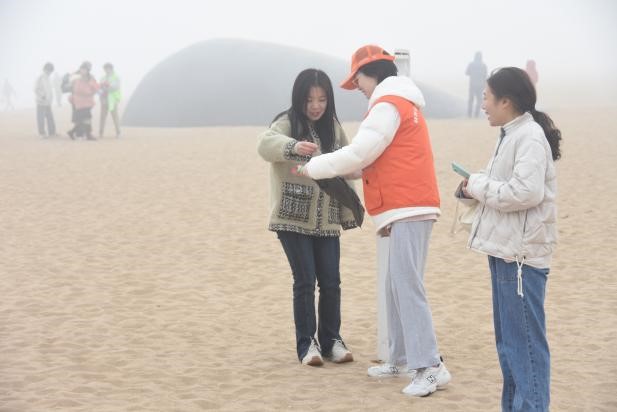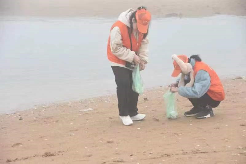 虽然天气有些寒冷,但是志愿者们依旧热情似火,激情高涨。他们逐一捡拾地上的烟头、纸屑、塑料瓶等垃圾并向周边出行的市民朋友倡议,共同维护环境整洁,爱护生态环境,保护自然资源,并劝阻乱丢垃圾等行为。积小善为大善,善莫大焉,志愿行动不止使海滩上的垃圾减少了,也同样感染了在海边散步的人,在活动期间有很多路人主动加入到我们的队伍,与我们一起清理海洋垃圾。