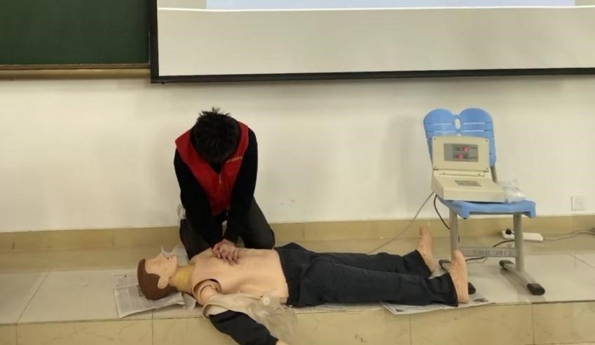 首先,志愿者讲解心脏复苏急救方法,以理论宣讲、现场演示、实践操作等方式讲解,帮助同学们更直观的学习与掌握相关技能,深刻体会“黄金四分钟”的重要性,提高同学们在紧急情况下的应急能力。