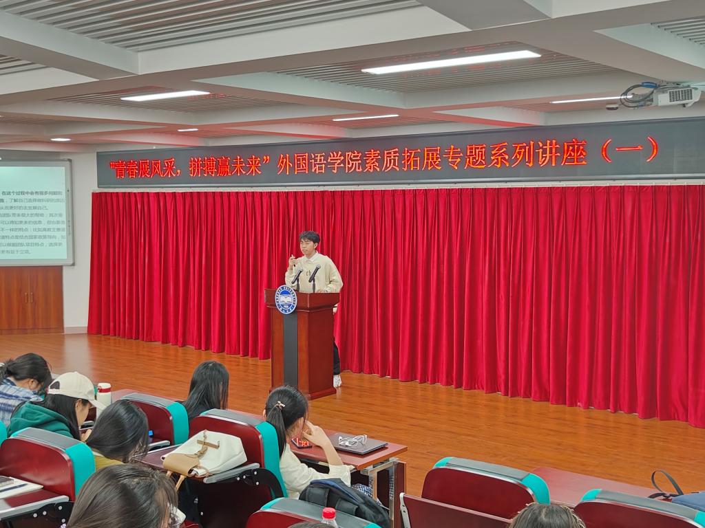 为培养学生创新意识、启迪创意思维、提升科学研究能力,外国语学院团委于3月30日面向大一、大二学生举办“青春展风采,拼搏赢未来”“互联网+”“挑战杯”竞赛系列讲座,帮助同学深入了解大创项目、“互联网+”以及“挑战杯”竞赛的相关知识。