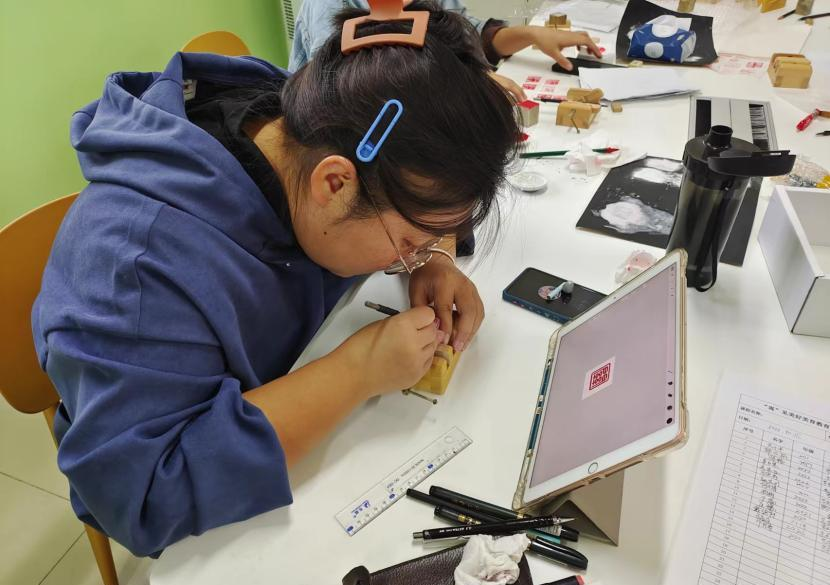 4月9日,在篆刻协会协办的“篆刻实操2”体验课堂上,负责人通过认真讲解篆刻基础知识并进行实操示范,加深了初学体验者对篆刻艺术的认识,帮助同学们领略了“方寸之间、气象万千”的意趣。引导同学们深入的了解了篆刻艺术所代表的中华传统“真、善、美、信、达、雅”的智慧真谛,唤醒了同学们对中华优秀传统文化的关注。