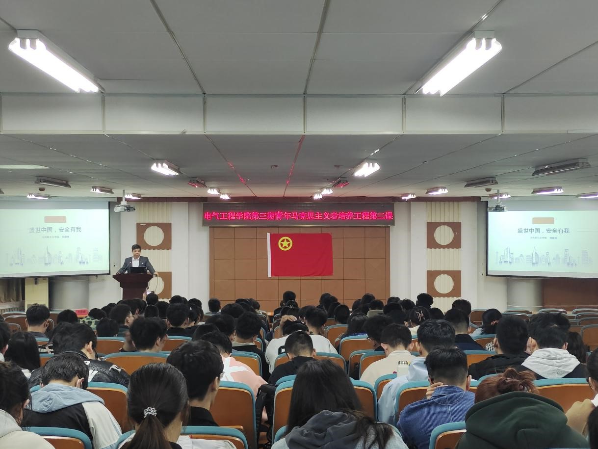 5月4日下午2:00电气工程学院“青马工程”培训班第二课如约而至。此次课程邀请马克思主义学院党委副书记刘遵峰教授做了题为“盛世中国,安全有我”的专题讲座,学院149名青马学员共同参加了学习。