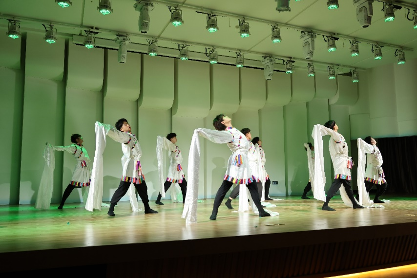舞蹈表演—《彩袖》彩袖飞舞,歌声嘹亮;歌曲表演—《等着我,亲爱的人》你是远方的星 ,星月相伴乘彩云 ,等到再相逢,等着我亲爱的人。