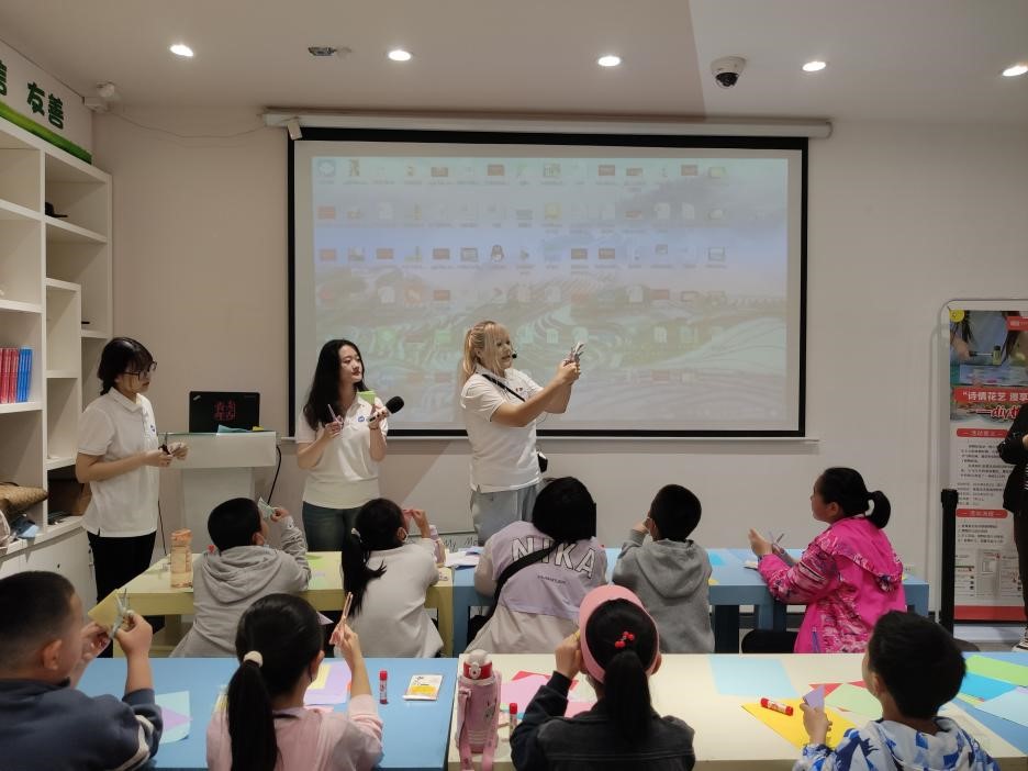 活动伊始,志愿者房云硕给小朋友们上了一堂生动有趣的双语故事课,引导小朋友们发现生活中无处不在的母爱,理解并感恩母亲的辛苦与付出。