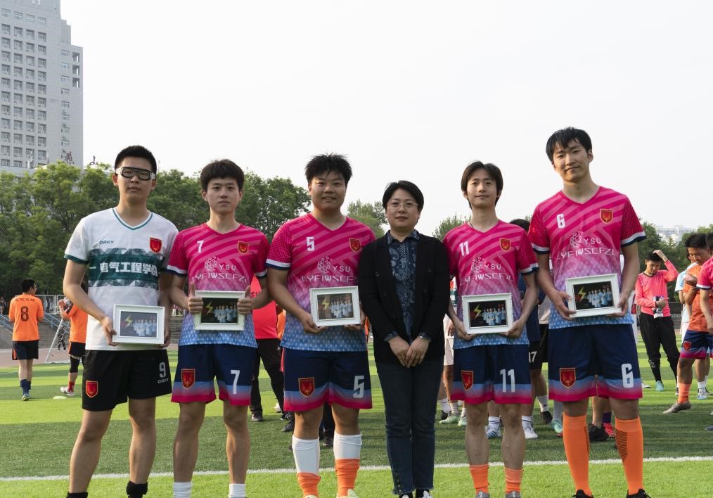 最后,比赛在一张温馨的大合照中落下帷幕,金色的阳光沐浴着彩色的球衣,电院师生在阳光下共同奔跑,共同收获着足球运动带来的喜悦与欢乐。