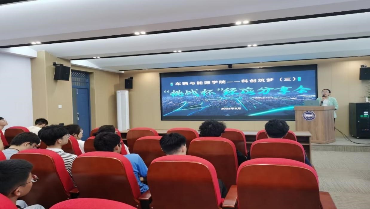 2023年5月26日18:30,由车辆与能源学院科学与技术协会组织开展的“挑战杯” 竞赛经验分享会在车辆馆317举办。此次活动的主题是“携手共进,共赢科创”,学院团委书记杨春婧出席了分享会,魏梦浩同学和夏士坤同学为科创竞赛爱好者交流经验并解答疑惑。