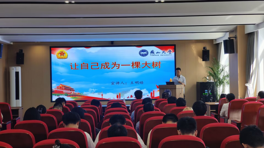 王明皓同学宣讲的主题是“让自己成为一棵大树”。作为退伍士兵,他介绍了真实的军营生活,分享自己的军旅经历,并通过模拟展示激发同学们携笔从戎的热情。他认为军事是关乎国家命运的大事,一个国家要是没有强大的军事力量作后盾,经济繁荣、民族独立便无从谈起。作为新时代的大学生,肩负着民族复兴的重大历史使命,所以,青年学生要学好一些基本的军事理论,增强国防意识,全面提升素质,将来为建设祖国,保卫祖国做出贡献。