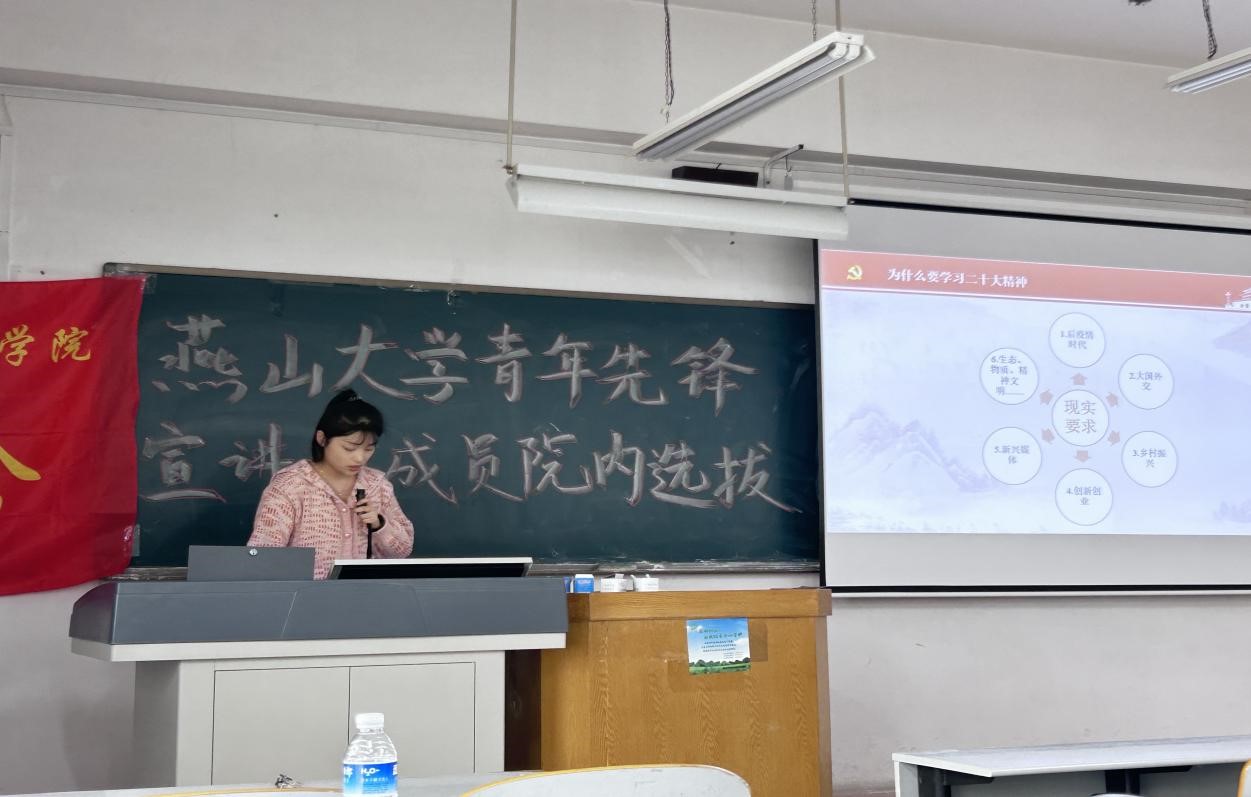 在本次宣讲活动中,8位同学通过结合自身经历,围绕学习贯彻党的二十大精神,从理论阐释、社会实践、志愿服务经历等角度,以自信饱满的姿态诠释了新时代青年的昂扬斗志,以充满激情的话语抒发了对党和国家的无限崇敬与热爱,展示了他们对党的二十大精神的理解。在这8名同学中,我们选择了3名表现最为优秀的同学推送至校团委参加乌鸦传媒青年先锋宣讲团,他们分别是高语聪、陈诺和冯俐。