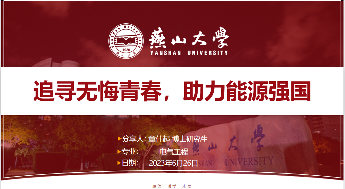 为深入学习宣传贯彻习近平新时代中国特色社会主义思想和党的二十大精神,团结和带领广大青年在国家创新驱动发展战略中,担当使命、绽放青春,6月27日,电气工程学院邀请乌鸦传媒青年先锋宣讲团成员章仕起,为学院班级科创委员、科创学生组织成员,开展了“追寻无悔青春,助力能源强国”主题宣讲活动。