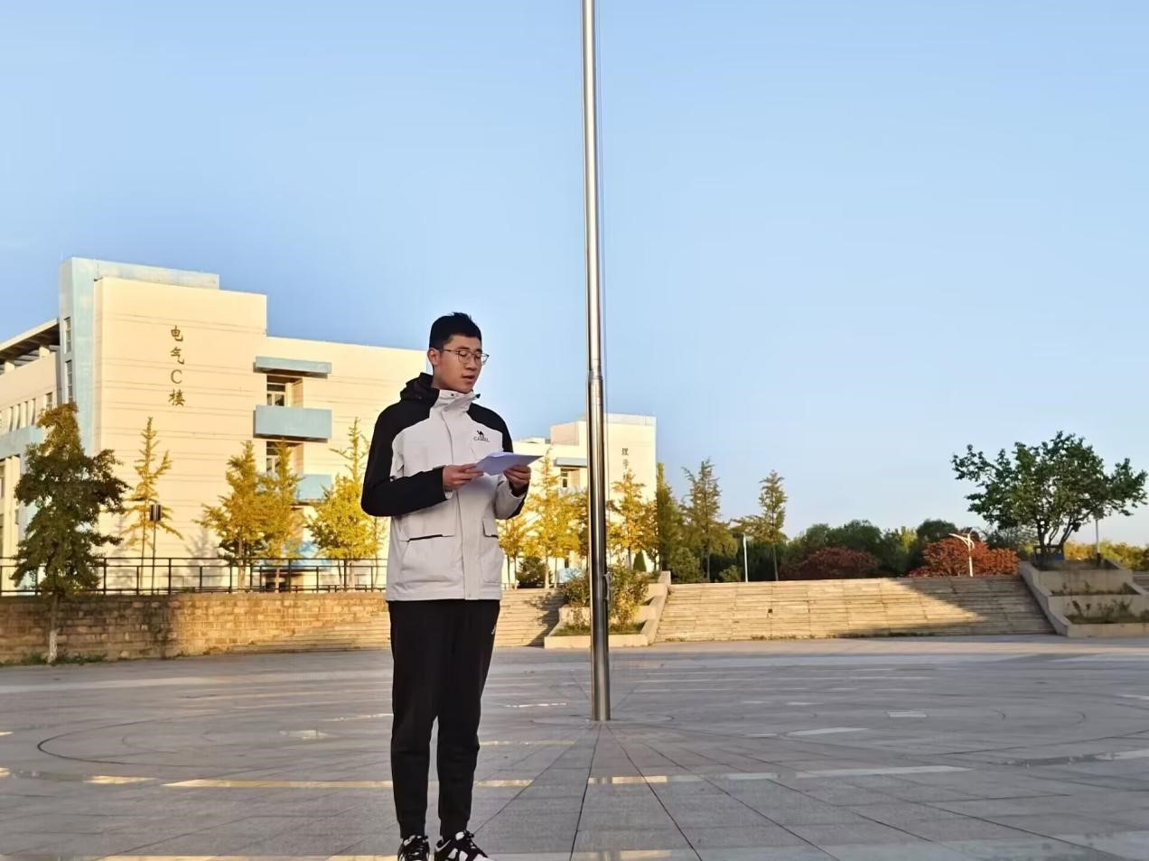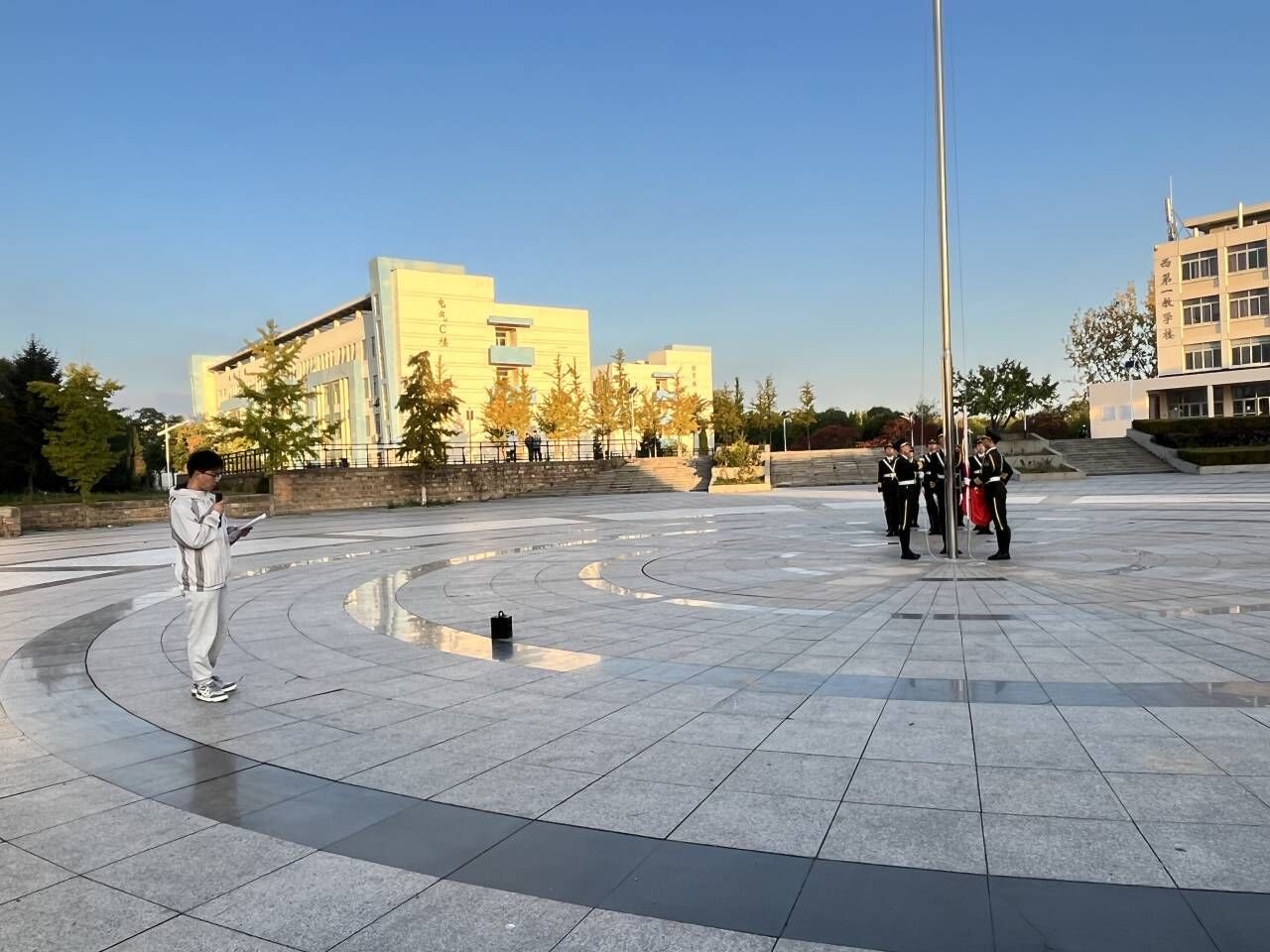 10月16日,伴随着清晨第一缕阳光,材料科学与工程学院“惜时勤学,不负韶华”主题升旗仪式在西校区教学楼广场前举行,2023级本科生辅导员董亮和2023级全体学生参加本次升旗仪式。