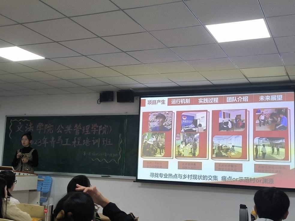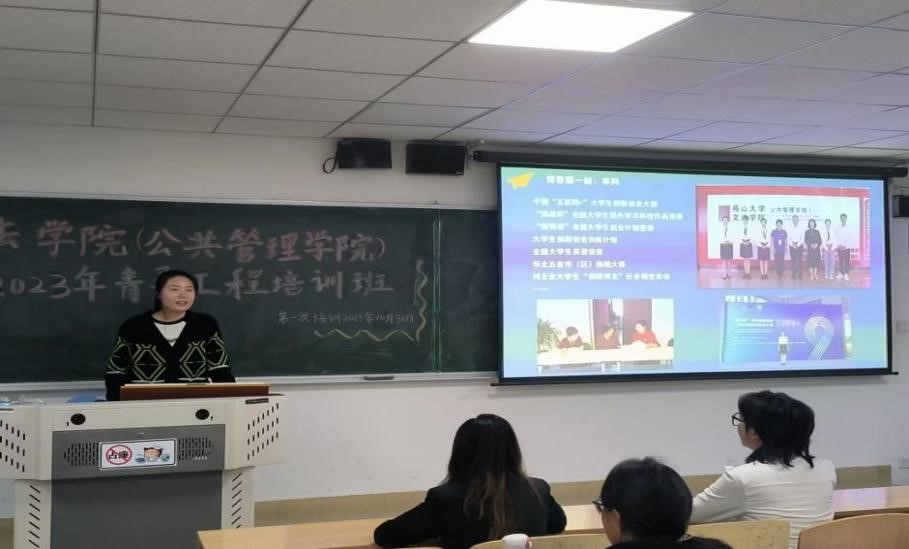 为深入学习贯彻党的二十大精神,全面落实习近平新时代中国特色社会主义思想,10月31日18点,文法学院(公共管理学院)在东区第四教学楼204室举办2023年“青马工程”首场培训,由学院卢衍航和齐若楠两位同学进行主讲,各团支部、学生组织推荐的团干部作为本期学员参加了培训。