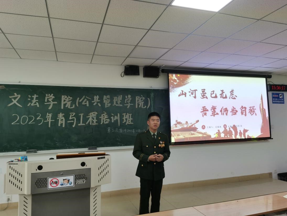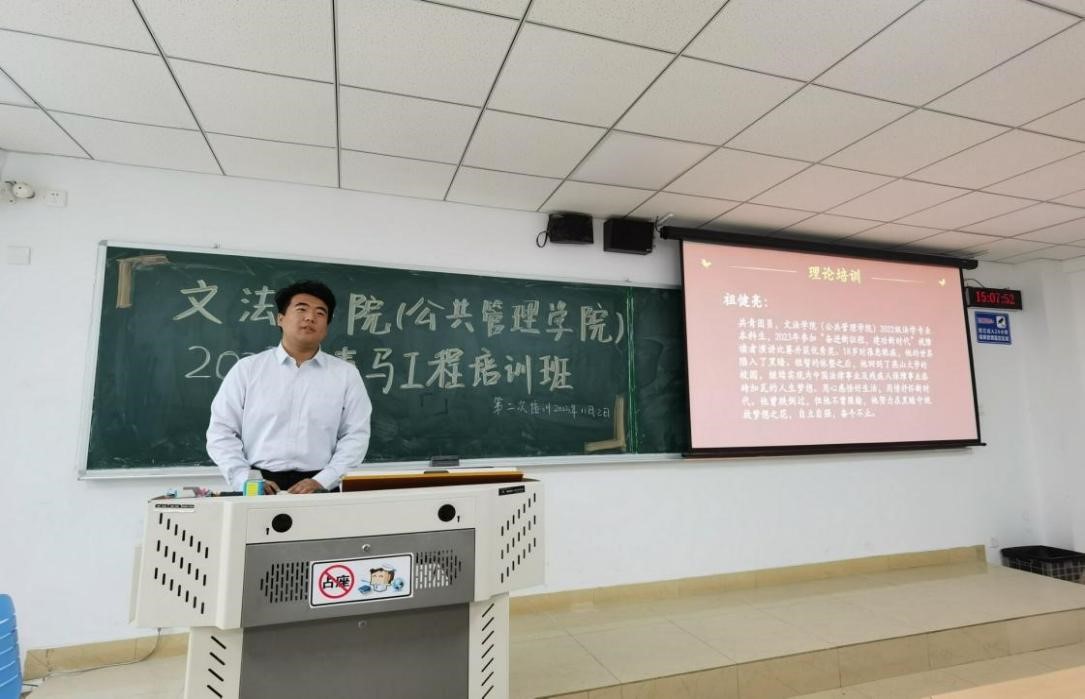 为发挥“青马工程”为党培养信仰坚定、能力突出、素质优良、作风过硬的青年政治骨干作用,11月6日下午,文法学院(公共管理学院)2023年“青马工程”第二次学习培训课在东校区第四教学楼204教室举行,学院祖健亮和毛继超两位同学主讲,各团支部、学生组织团干部到场参加了培训。