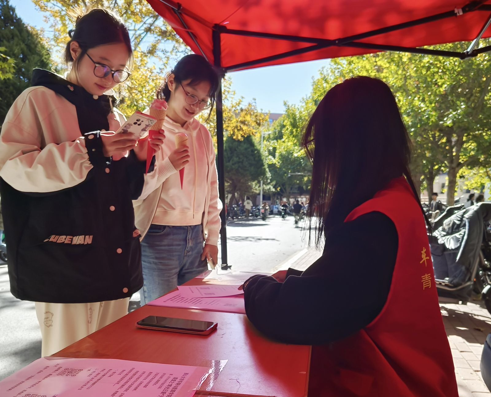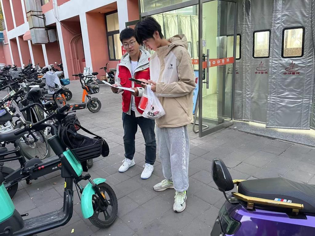 活动正式开始前,校内项目部工作人员在中快餐厅和燕鸣湖餐厅前进行了为期两天的线下宣传。工作人员通过线下宣讲和餐厅门口发宣传单的方式向路过同学进行活动介绍,号召大家扫码入群参与报名。大家各司其职、分工合作,使得活动顺利开展。