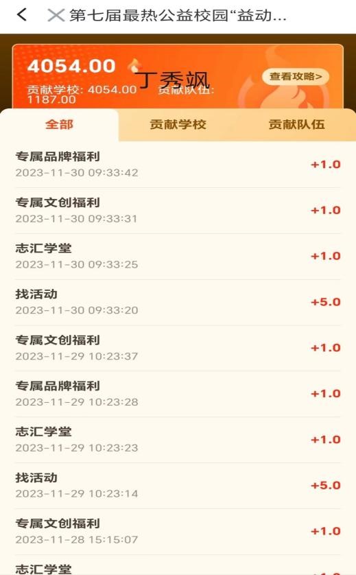 10月12日,活动正式开始。同学们根据工作人员的指导,按照活动要求,每日在志愿汇APP打卡,学习志愿服务公开课,进行公益知识答题并参与志愿服务记录时长,将志愿者精神内化于心,外化于行。此外,同学们还在个人社交平台发布带有“志愿服务”的相关话题,分享志愿者倡议书,成为志愿服务推广大使,倡导身边人一起做志愿,将志愿服务落实到小处,落实到身边。12月3日活动结束,工作人员收集同学们的最终活力积分截图,整理统计所有同学的活力积分数据,并在活动群内予以公示。本次活动开展周期长、活动内容丰富多样,让同学们从不同角度了解了志愿服务,倡导同学们积极参与志愿服务,有利于培养同学们的责任意识和担当精神。在本次活动中,同学们也感悟颇多,收获颇丰,活动的顺利举办获得了师生一致好评,取得良好反响。