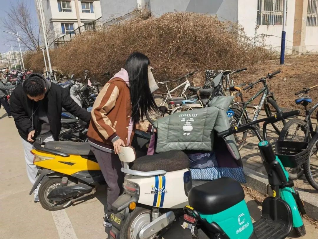 活动过程中,志愿者们分工明确、井然有序,积极地展开各项工作,将乱停乱放、违规占道的车辆摆放到白线以内的停车区域,并对停放区域内的车辆进行了统一规范整理,将停靠斜歪、方向相反的车辆扶正归位,并且将附近的共享单车也排放整齐。同时向停车、取车的同学积极宣传“文明出行、有序停车”的理念,引导骑行者将电动车和单车摆放到规定的停车区域内,共同维护了良好的停车秩序。与此同时,在志愿者们齐心协力地努力之下,停放区域也恢复了井然有序的模样。