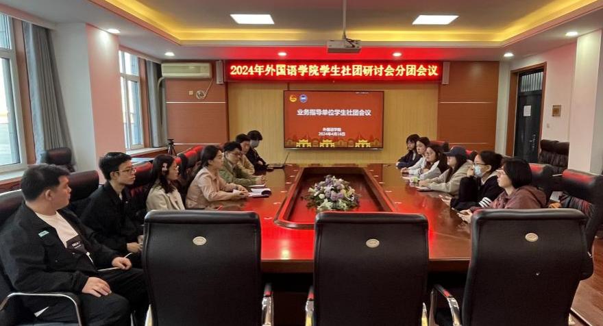 为进一步加强和规范我院学生社团管理,充分发挥社团育人功能,推动社团健康有序发展,以丰富多彩的社团活动促进校园文化繁荣。外国语学院于4月16日晚17:30在人文馆417会议室召开2024年业务指导单位学生社团会议。出席此次会议的有团委副书记许美慧、英语港等4个学生社团的主要负责人和指导教师参会,学院团委书记宋冉主持会议。