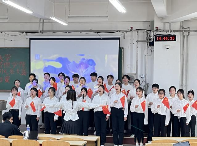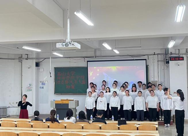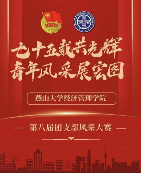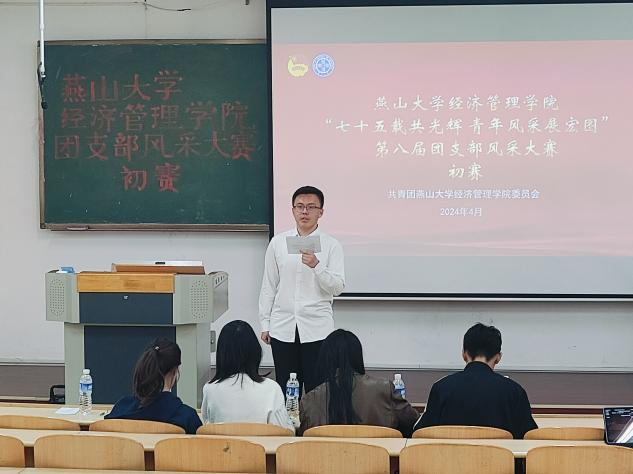 为弘扬五四精神,庆祝中华人民共和国成立七十五周年的辉煌历程,激励广大青年展现青春风采、共创青春辉煌,4月18日13:00,经济管理学院团委面向2023级全体本硕团支部,在经管楼B102举办“七十五载共光辉,青年风采展宏图”第八届团支部风采大赛初赛,本次比赛由贾尚林、马沁萌主持,院学生会主要负责人刘良骏、院研究生会主要负责人李卓庭、厉昌艳、逐梦青年志愿者协会主要负责人郭明洋、大学生科学技术协会主要负责人张馨月、杨春佳担任评委。